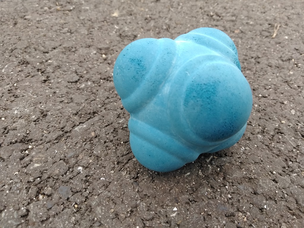リアクションボールを地面に落とし、ワンバウンドさせキャッチする。