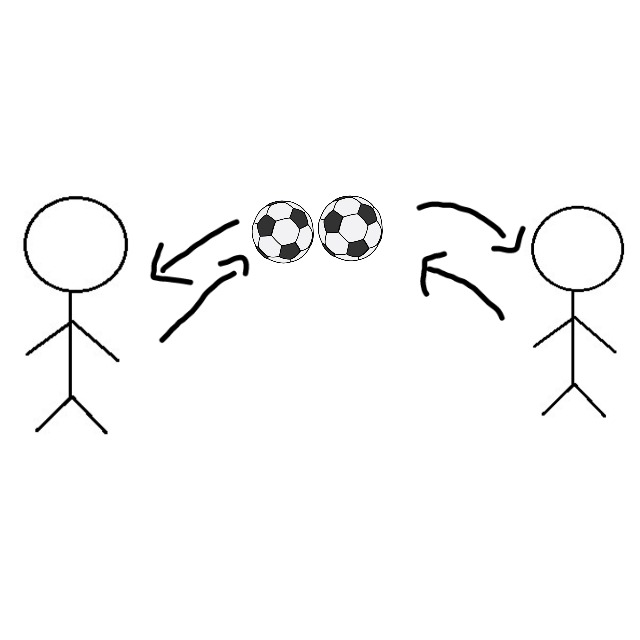 次に、1つのボールを使い手でキャッチボールを行いましょう。